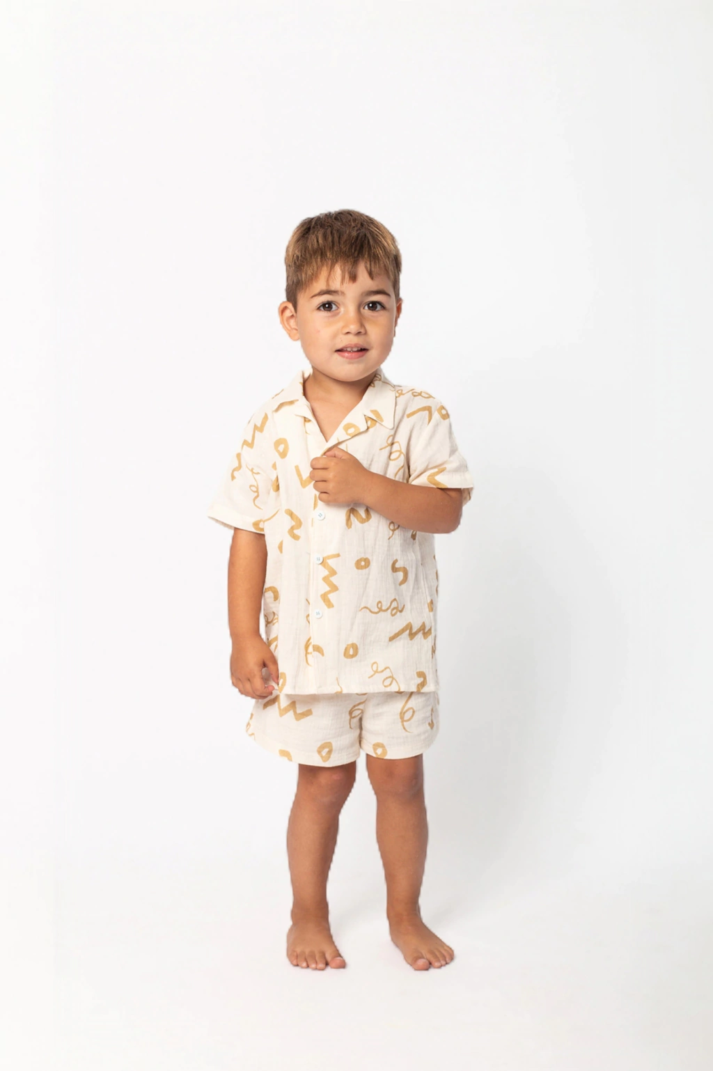 CAMISA OVERSIDE CONFETTI: ¡La opción perfecta para los pequeños! Esta camisa de manga corta de corte amplio está confeccionada en gasa 100% algodón, garantizando comodidad y frescura en todo momento.