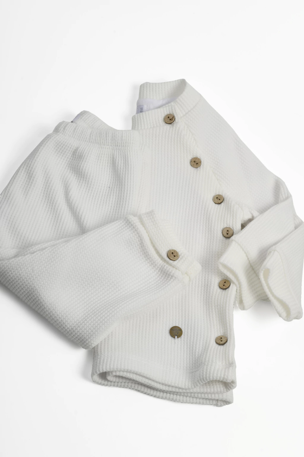 ¡Descubrí el Conjunto Praga! Este hermoso buzo batita junto con babucha de wafle forrado en jersey de algodón es la elección perfecta para mantener a tu bebé abrigadito y cómodo. Su diseño unisex y los botones de coco le aportan un toque delicado y encantador. Ideal para cualquier ocasión, este conjunto es perfecto para que tu pequeño explore el mundo con estilo. ¡No te pierdas la oportunidad de vestir a tu bebé con la calidez y ternura del Conjunto Praga!