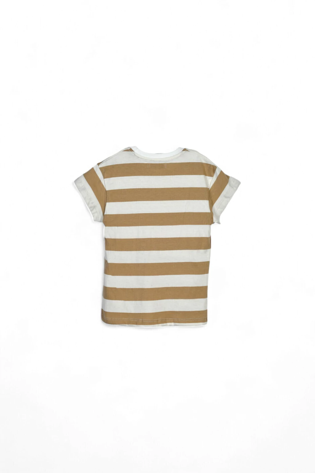 Prenda confeccionada en jersey premium que combina tecido a rayas y elegantes detalles de bordado a contratono. Este modelo es perfecto para quienes buscan un look moderno y confortable.